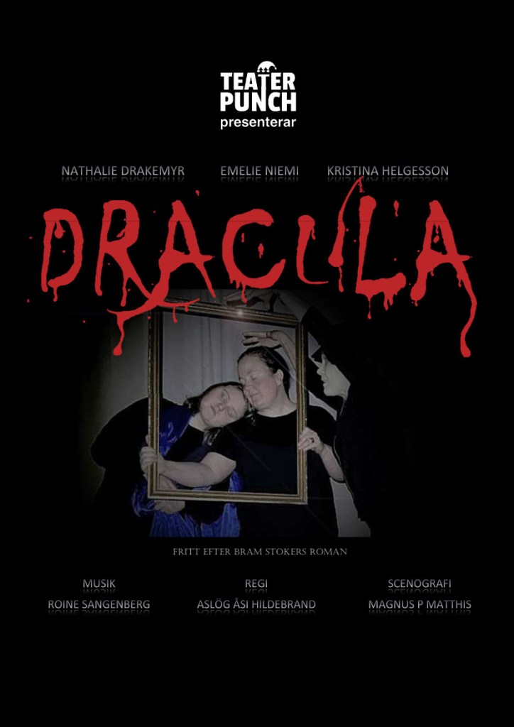 Dracula är en visuell barnföreställning med nyskriven musik. Vi följer den starka vänskapen mellan Minna och Lucy i Bram Stokers roman och låter Dracula symbolisera olika slags ondska barnen kan tänkas relatera till. Fysisk skådespel blandas med dockspel och dialogen hålls till ett minimum så att barn med funktionsvariationer och barn med annat modersmål än svenska också lätt ska kunna följa sagan. Dracula är en saga om mod, vänskap och lojalitet, en saga som skrämmer men som även ger hopp.